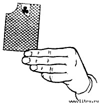 Вы берете этот кусочек в правую руку и держите карту другой рукой большим и указательным пальцами левой руки. Делаете вид, что бросаете кусочек к карте. Он исчезает из вашей руки — и в тот же миг карта полностью восстанавливается. Иногда фокусники не оставляют оторванного куска зрителю и сжигают всю карту. Зрители выражают удивление по поводу не полностью восстановленной карты, но вы тут же поднимаете недостающий угол с пола, куда только что сами его бросили, и затем продолжаете фокус, как было описано ранее.