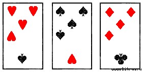 При выполнении фокуса вы не должны показывать, что различаете фигуры на ощупь. Этот принцип вы всегда должны соблюдать при исполнении фокусов. Если он основан на математическом расчете, то вы должны сделать вид, что тут имеет значение необыкновенная ловкость пальцев или какие-то другие необыкновенные ваши способности. В выступлении желательно чередовать фокусы, основанные на ловкости рук, и фокусы, основанные на математическом расчете.