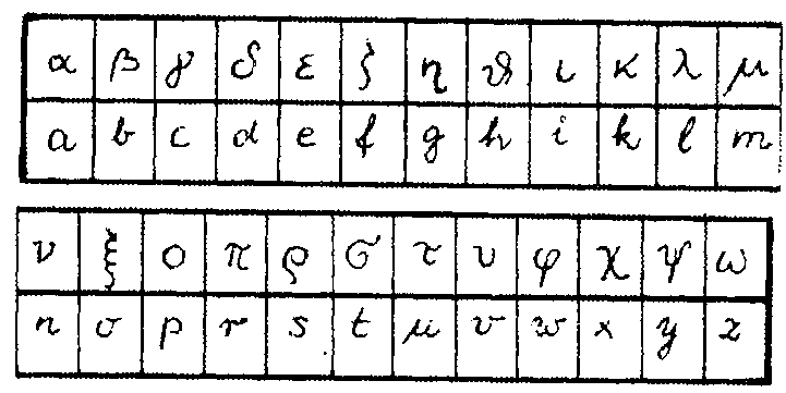 Лукас начал с альфы и закончил омегой, надписывая над латинскими буквами: альфа — а, бета — b, гамма — си так далее.