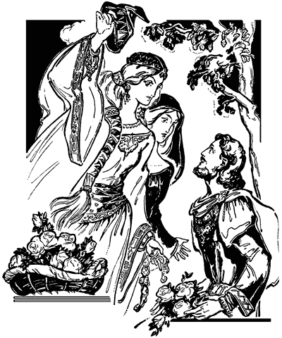 — Хорош же ты! — усмехнулась Гиневра. — Вот тебе мой приказ. Возьми эту драгоценную цепь и отдай тому, кто забыл её здесь. А мне поднеси корзину, полную свежих роз.