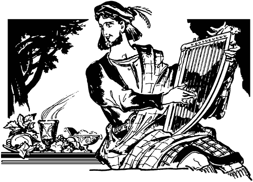Певцы играют на арфах, прославляя подвиги храбрых.