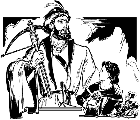 Рано-рано вышел он из дома. Может, не пошёл бы он в такую рань, да старшему сыну не терпится: до петухов проснулся сын, торопит. Обещал отец сегодня, в день праздника святого Мартина, у знакомого оружейника Конрада подобрать ему небольшой, по руке, самострел. [53]
