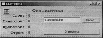 В этой программе следует обработать только два события: нажатие кнопки Обзор и нажатие кнопки Статистика. Сначала — о кнопке Обзор: