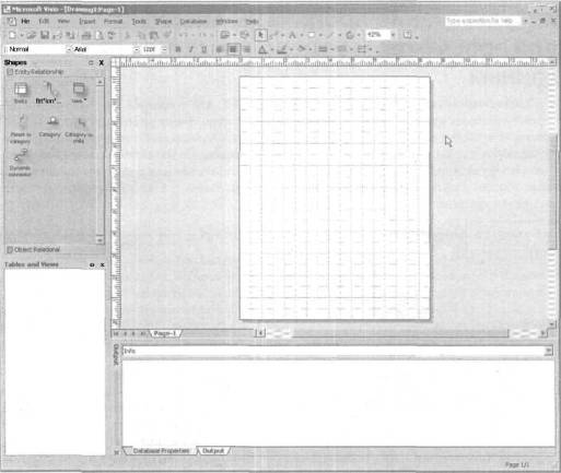 2. Затем в панели Template (Шаблон) выберите параметр Database Model Diagram (Схема базы данных), и на экране появится основное окно программы Visio (рис. 1.8).