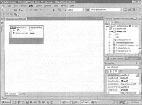 7. Сохраните схему и закройте окно редактирования схемы. В результате этих действий будет автоматически сгенерирован файл DepartmentsDS.vb.