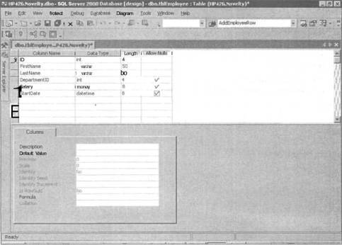 5. Повторите действия, описанные в п. 1, чтобы вновь отобразить поля таблицы tblEmployee (или просто щелкните на кнопке Refresh в панели инструментов окна Server Explorer) для того, чтобы убедиться в наличии нового поля StartDate в таблице tblEmployee.