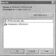 Для запуска сценария можно выбрать временную ссылку на базу данных. Щелкните дважды на последнем элементе <temporary reference> списка ссылок для отображения уже знакомого диалогового окна Data Link Properties, предназначенного для определения новой ссылки на базу данных. Однако эта ссылка не обязательно должна быть включена в проект или окно Server Explorer.