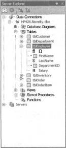 1. Убедитесь в том, что таблица tblEmployee не содержит поле StartDate. Для этого в окне Server Explorer раскройте папку таблицы tblEmployee для просмотра всех полей данной таблицы, как показано на рис. 8.10.