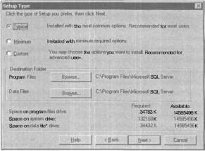 РИС. 3.1. Диалоговое окно Setup Type программы SQL Server Installation Wizard
