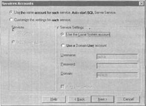 РИС. З.2. Диалоговое окно Services Accounts про граммы SQL Server Installation Wizard