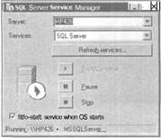 Программа SQL Server Service Manager не является обязательным элементом SQL Server и предназначена только для более удобного управления процессом активизации и деактивизации SQL Server. После перехода к рабочему варианту SQL Server программа SQL Server Service Manager уже не понадобится.