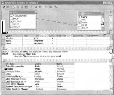 РИС. 3.17. Результаты создания и выполнения нового представления в окне конструктора представлений программы SQL Enterprise Manager