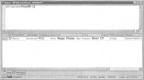 РИС. 3.19. Запись клиента возвращается с помощью хранимой процедуры GetCustomerFromID