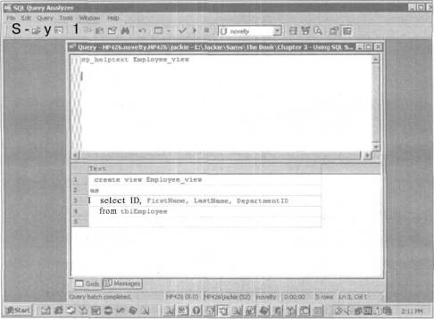 РИС. 3.20. Отображение текста представления с помощью хранимой процедуры sp_helptext
