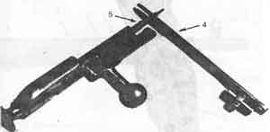 Фото 19. Разборка затвора. Вилкой соединительной планки 4 вывинтить ударник 5, придерживая курок. Внимание: сильная боевая пружина может "выбить" детали в разные стороны по окончании раскрутки