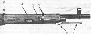 – снять вверх ствольную накладку 4, после чего отделить ствол от ложа