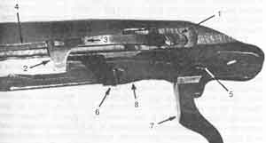 Схема 2. Положение деталей ударного и спускового механизмов при крайнем заднем положении затвора