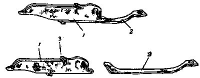 Схема 4. Отсечка-отражатель: 1- лопасть; 2 - пружинная часть; 3 - зуб