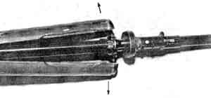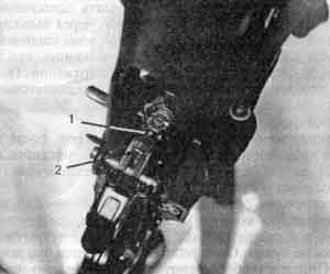– повернуть замыкатель 1 по часовой стрелке; ~ сдвинуть вперед верхнее упорное кольцо 2