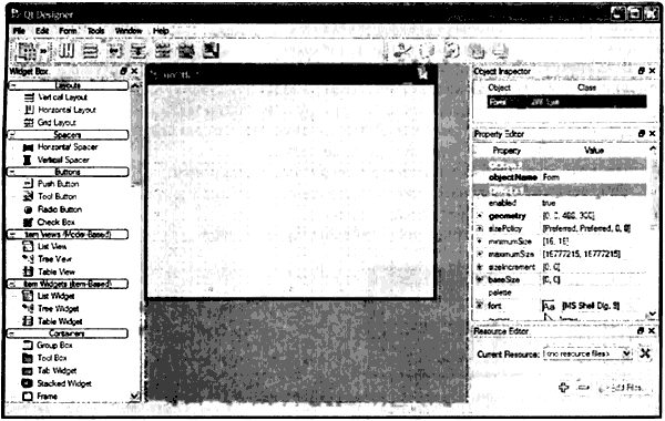 Рис. 2.5. Qt Designer в режиме пристыкованного окна в системе Windows.