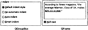 Контейнеры Qt — это виджеты, которые содержат в себе другие виджеты. Фрейм QFrame, кроме того, может использоваться самостоятельно просто для вычерчивания линий, и он наследуется многими другими классами виджетов, включая QToolBox и QLabel.