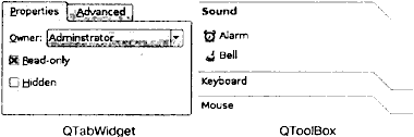 Рис. 2.17. Виджеты одностраничных контейнеров Qt.