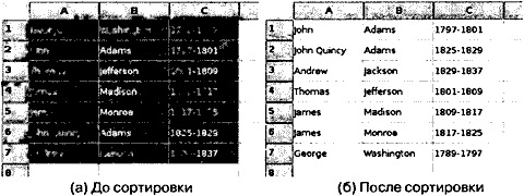 Рис. 3.14. Сортировка выделенной области электронной таблицы.