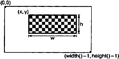 Функция pixelRect возвращает объект QRect, который может использоваться функцией QPainter::fillRect. Параметры i и j являются координатами пикселя в QImage, а не в виджете. Если коэффициент масштабирования равен 1, обе системы координат будут полностью совпадать.