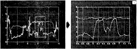 Пользователь может увеличивать изображение, несколько раз используя резиновую ленту, уменьшить изображение при помощи кнопки Zoom Out (уменьшить изображение) и затем вновь его увеличить с помощью кнопки Zoom In (увеличить изображение). Кнопки Zoom In и Zoom Out появляются при первом изменении масштаба изображения, и поэтому они не будут заслонять экран, если пользователь не изменяет масштаб представления диаграммы.