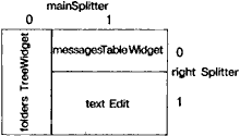 Когда пользователь изменяет размер окна, QSplitter обычно распределяет пространство таким образом, что относительные размеры дочерних виджетов остаются прежними. В примере приложения Mail Client нам не нужен такой режим работы; вместо этого мы хотим, чтобы QTreeWidget и QTableWidget сохраняли свои размеры, и мы хотим отдавать любое дополнительное пространство полю редактирования QTextEdit. Это достигается с помощью двух вызовов функции setStretchFactor. В первом аргументе задается индекс дочернего виджета разделителя (индексация начинается с нуля), а во втором аргументе — коэффициент растяжения; по умолчанию используется 0.
