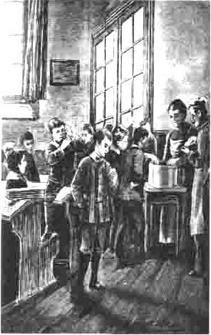 Все двенадцать мальчиков, составляющие младший класс пансиона, сели за один стол, на одном конце которого было место для Василия Ивановича. Каждому мальчику дали по бараньей котлетке, стакан чаю и бутерброд с сыром.