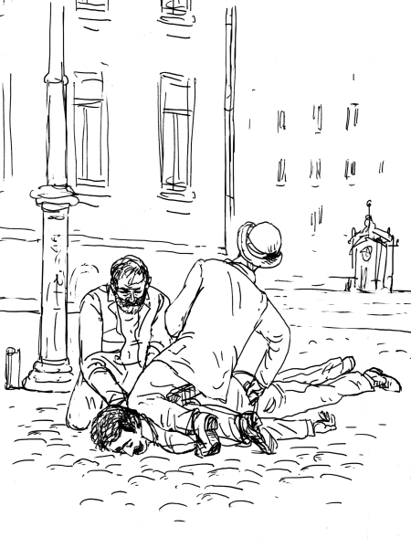Родион Георгиевич издалека помахал городовому, маявшемуся в ночном карауле на углу Невского с Малой Конюшенной, и ускорил шаг. До родных ворот оставался десяток саженей. Почудилось, что сзади кто-то есть. Но познакомиться не пришлось. На затылок упала скала, улица плавно расплылась, колени стали шаткими, равновесие закончилось, так легко и воздушно стало телу, что хоть пари, но тут подлетела черная птица с кривым клювом, посмотрела печально и растаяла, за нею звезды повели хоровод со свистом и… Подбородок уперся в холодный булыжник.