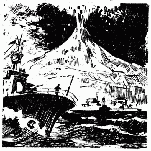 — Ну, так вот, возвращаемся мы из очередного дозорного крейсерства — дело тоже в октябре было, двадцать третьего числа, утром,— смотрим: что такое? Из кратера нашего вулкана вырвался вдруг гигантский столб буро-желтого дыма, достиг высоты примерно в десять километров и раздался наверху в стороны шапкой гигантского гриба. (На взрыв атомной бомбы похоже, если вы видели снимки.) Признаюсь, мне стало не по себе: неужели начинается извержение? Мне доводилось наблюдать издали, как бушевала Ключевская сопка, и даже издали зрелище это, мягко говоря, внушительное. А тут... тут вулкан был нашим соседом: морбаза и жилой поселок всего метрах в шестистах от него.— Баулин усмехнулся.— Точнее сказать, мы к нему присоседились.