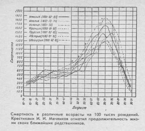 Еще в самые отдаленные времена царь Давид провозгласил, что „жизнь человеческая — 70 лет. Более сильные достигают 80; дальше остаются только труд и горесть“. С тех пор 70-летний возраст стал указываться как естественный предел нормальной жизни. Установлено и получено много подтверждений того, что именно в возрасте 70, 71 года происходит больше всего смертных случаев (за вычетом годов раннего детства).