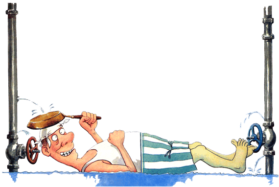 В доме прорвало сразу две трубы: горячую и холодную. Из холодной трубы выливается в квартиру по 70 литров ледяной воды в минуту, а из горячей — по 12 литров кипятка в секунду.