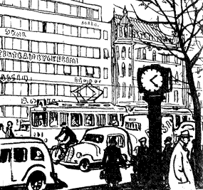 Откуда-то со стороны громадного красного здания почтамта донесся нетерпеливый звук автомобильной сирены. Скоро гудел уже целый хор – хриплый и раздраженный. Как раз в эти дни газеты оживленно обсуждали преимущества езды без сигналов в городе, и можно было подумать, что водители решили воспользоваться случаем демонстративно выступить в защиту своего права сигналить сколько угодно.