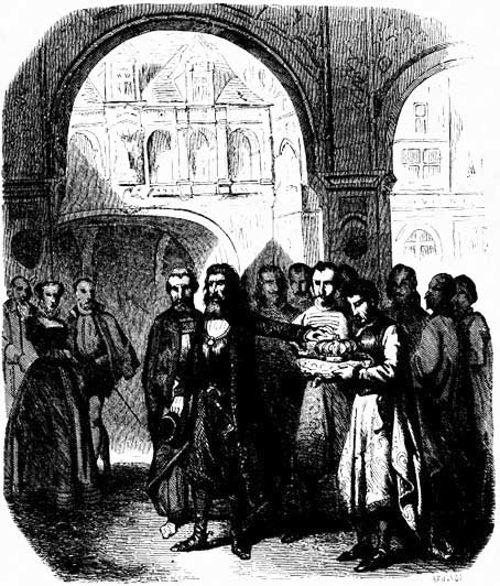 Герцог, тщетно пытаясь совладать с дрожавшим от волнения голосом, ответил на том же языке, что он с благодарностью принимает оказанную ему честь. Пока он говорил, Карл стоял, сжав губы и устремив на герцога взор, неподвижный и грозный, как взор орла.