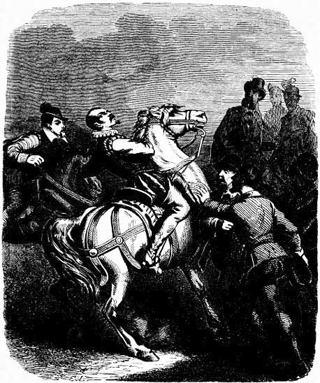 Несчастный король выпустил поводья, вытянул руки и опрокинулся навзничь; при этом втором приступе испуганные придворные подхватили его на руки.