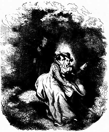 За кустом послышался смех, который смеющиеся безуспешно пытались сдержать. Обе принцессы не могли не засмеяться при виде двух бойцов, с гримасой на лице растиравших раненые плечи. Их смех донесся и до двух дворян, не подозревавших о присутствии свидетелей; они оглянулись и узнали своих дам.