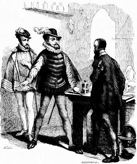 Обе пары исчезли как раз вовремя. Екатерина вставила ключ в замочную скважину второй двери, когда герцогиня Неверская и Коконнас сбегали по наружной лестнице, так что, войдя в комнату, она услышала, как заскрипели ступеньки под ногами беглецов.