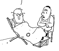 Гуннар лежит в старом шезлонге, закутанный пледом. Вид у него бледный и несчастный.