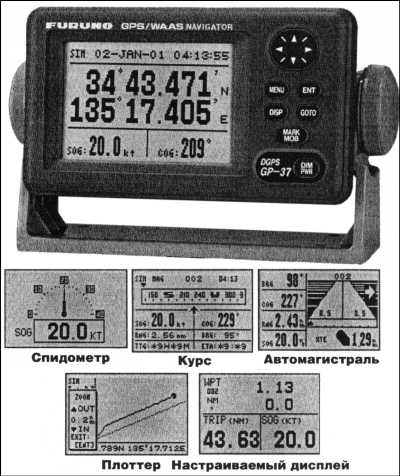 В приемниках GPS используются два способа отображения информации: алфавитно-цифровой и графический (иногда используется термин «псевдографический»). В первом случае для отображения получаемой информации используются цифры (координаты, скорость, пройденный путь и т. п.) и буквенные сочетания, поясняющие цифровые данные – обычно аббревиатуры фраз (например, МОВ – «Man Over Board» или, по-русски – «Человек за бортом!») и сокращения слов (например,