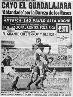 «Матч Уругвай – СССР нельзя назвать иначе, чем сенсационным, – писал известный обозреватель „Франс футбола“ Жак Ферран. – И не только с точки зрения его исхода, но и хода самой игры. Проигрыш советской сборной тем более неожидан, что на этот раз она выступала в сильнейшем составе. Сборная СССР, команда с подкупающей, открытой манерой игры, столь импонировавшая нам раньше, стала жертвой уругвайского спрута, в чьи щупальца стал неизменно попадать мяч, чтобы застревать там надолго. Все линии советской сборной, исключая, может быть, защитную, где уверенно играл Шестернев, утратили мобильность и полностью уступили инициативу сопернику».