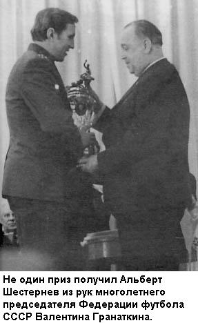 Альберт Шестернев стал символом ЦСКА, и трудно было представить его в каком-либо ином клубе. Ему на редкость к лицу была военная форма, офицерский китель, он словно родился для воинской карьеры, для защиты отечества, настоящий русский богатырь, и отстаивал его честь на футбольных полях с великим достоинством, «один из гвардии бесстрашных и самолюбивых», как сказал о нем Лев Филатов.
