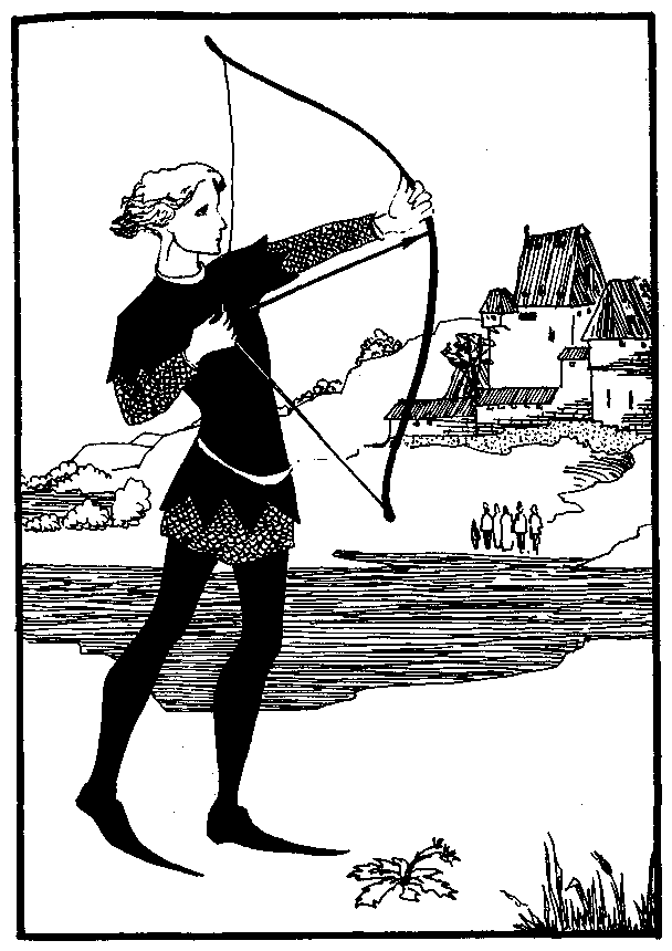 Теперь настала его очередь; он взял две стрелы, одну заткнул себе за пояс, другую наложил на тетиву и послал, заставив описать полукруг; когда же первая стрела почти отвесно устремилась вниз, он расщепил ее второй стрелой.