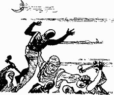 Владимир, долго сдерживавший свое негодование, дрался со злостью. Он схватил выроненное кем-то оружие и действовал им как дубиной. Удары его отличались невероятной по марсианским масштабам силой, и преследователи летели в стороны, как оловянные солдатики.