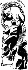 «Возможно, — подумал Владимир, — у меня хватит сил вырвать замок. Но что дальше? В башне сидит сторож — во время бури незачем выходить наружу. Как он будет себя вести, если крышка люка внезапно откроется и в ней появится голова неизвестного существа? Каждый часовой, поставленный на пост, а сторож тот же часовой, обязан принять меры и пустить в ход оружие… К чему с самого начала ставить себя в положение врага? Если же постучать, кто знает, друг или враг окажется наверху? Ведь кто-то произвел взрыв — быть может, тот же сторож… Вполне вероятное предположение. Кстати, оно сразу объясняет, почему никого из преследователей не было видно враг еще раньше был здесь и ждал появления космонавтов».