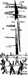 Из кормовых дюз вырвался широкий сноп пламени, ракета вздрогнула и, набирая скорость, устремилась ввысь.
