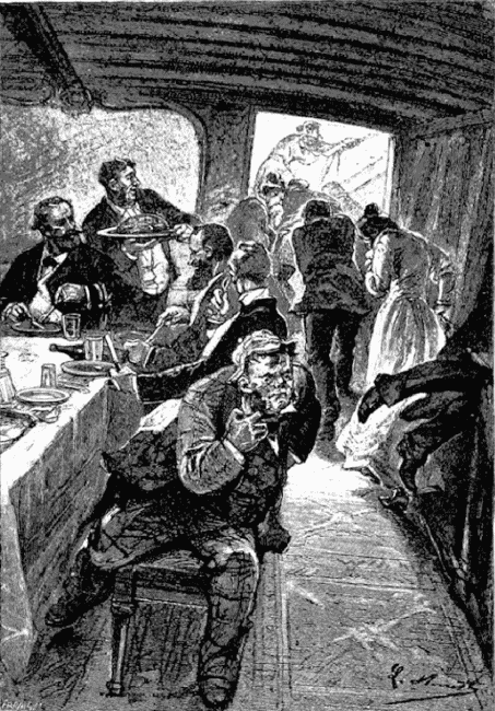 Большинство обедавших не выдержало такого испытания. Месье Дезирандель одним из первых спешно вышел из зала, чтобы глотнуть свежего воздуха. И у него нашлось немало последователей. Это было настоящее бегство, несмотря на увещевания капитана, устали повторявшего: