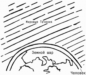 Рис. 2. Человечество ничтожно мало по сравнению со вселенским масштабом Мировых Течений.